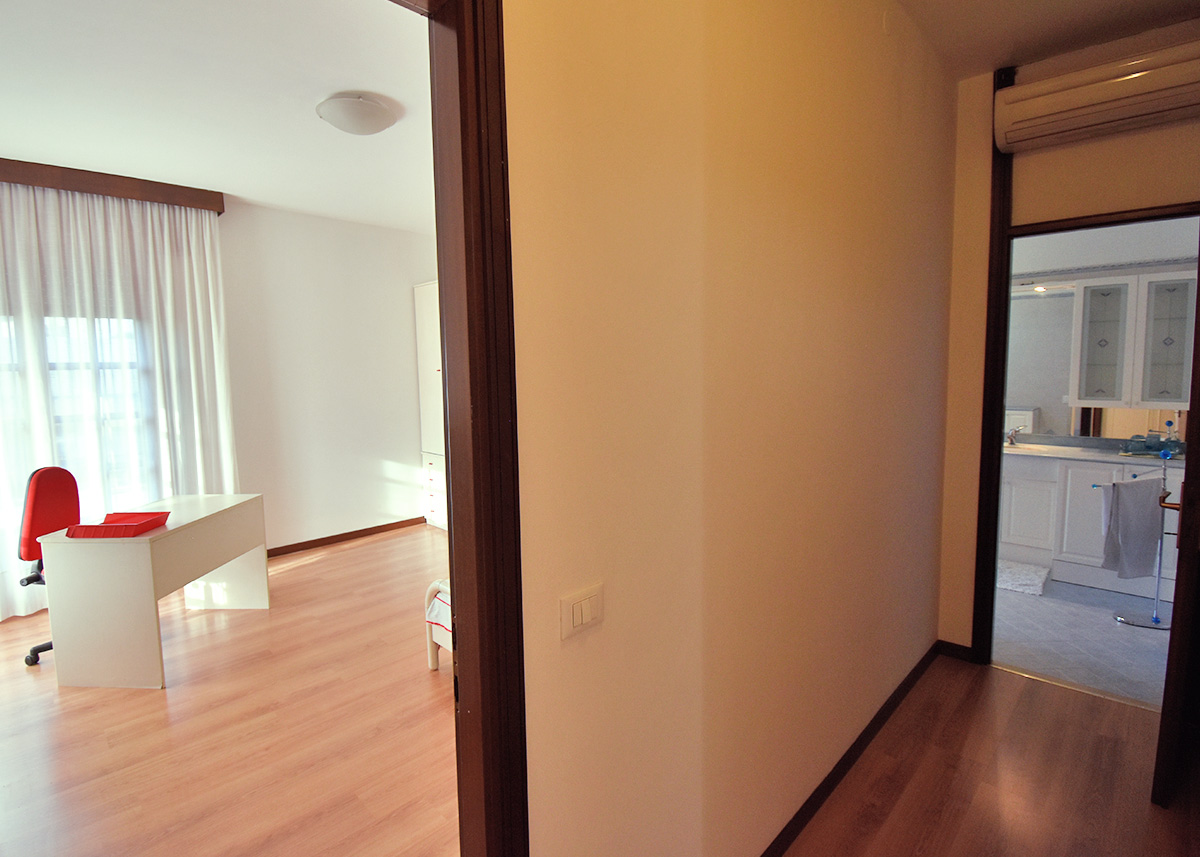MARTE è una camera da 25 mq con bagno ad uso esclusivo. Dispone di un letto singolo, due armadi a doppia anta, una libreria, una scrivania, mobili e cassetti nell’accogliente bagno dagli spazi generosi e ancora un armadio a doppia anta nel corridoio d’ingresso. Tre terrazzi che si affacciano sul giardino rendono questa sistemazione il luogo ideale per vivere una lunga permanenza in tutto comfort.